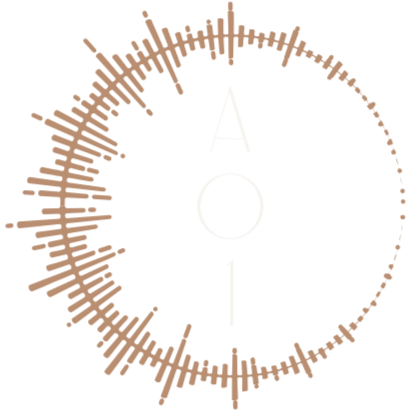 Graphic of circular sound wave with the letters 'A O I' in the center on a black background.